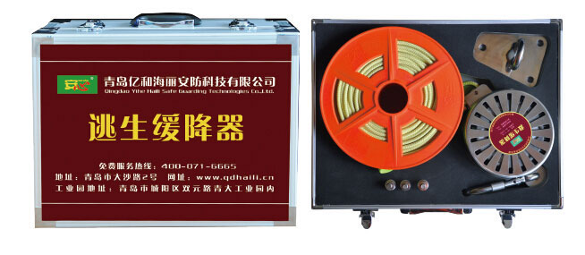 救生緩降器是一種靠自重從一定高度,以一定的速度沿建筑物外墻安全降至地面,并能連續(xù)使用的輔助逃生器具。由調(diào)速器、安全帶、安全掛鉤、繩索、室內(nèi)支座、室外支架、預(yù)埋件等配件組成,未成年人須在成年人的指導(dǎo)下使用。