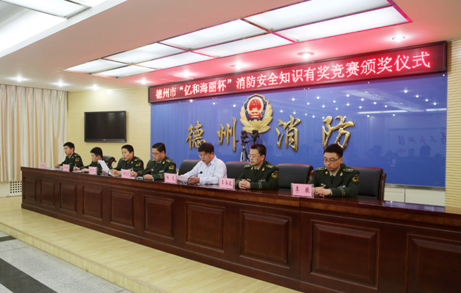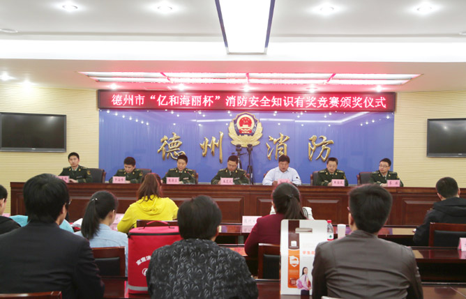 2014年3月25日“億和海麗杯”消防安全知識有獎競賽頒獎儀式在山東省德州市舉行,德州市消防支隊張保衛(wèi)高級工程師通報消防安全知識有獎競賽活動開展情況,青島億和海麗副總經(jīng)理楊光就本次活動發(fā)表了講話。