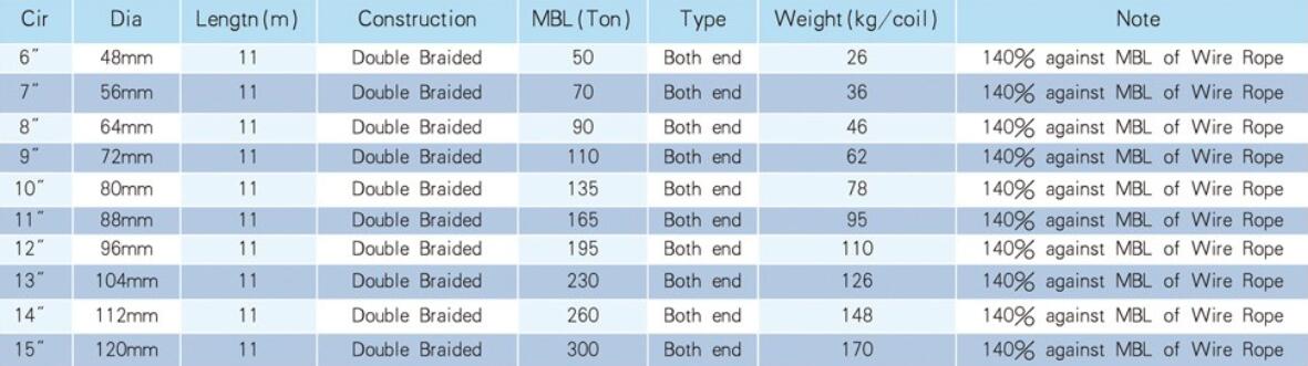 若需要其他尺寸.可以根據(jù)客戶要求定制系泊纜繩尾。