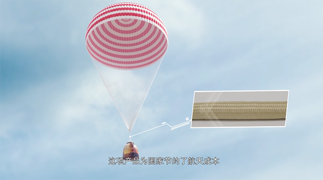 為航天科技集團(tuán)508所研制的纖維垂掛吊索,用于連接返回艙和降落傘,咱們國(guó)家研制大型載人宇宙飛船,相應(yīng)的返回艙也增大很多,為了搭載6-10名宇航員和往返運(yùn)輸貨物,要想辦法在其他部位減重,為此,我們專(zhuān)門(mén)研發(fā)了此款載人飛船返回艙垂掛吊索產(chǎn)品,重量?jī)H4.5kg,替代了以前100多公斤的鋼纜,為國(guó)家節(jié)省的上億資金。